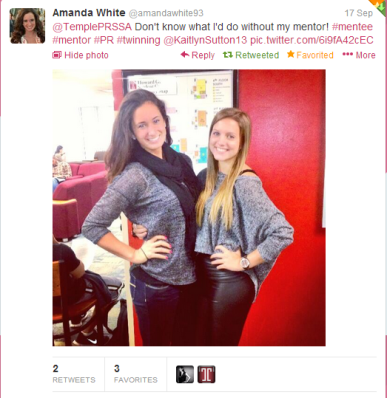 Last fall, Temple PRSSA introduced a mentorship program for its members. The program, so far, has been incredibly successful in matching up an upperclassman, or an executive board member (the mentor) with a younger PRSSA member (the mentee) and creating a relationship where the mentor helps to guide the mentee through their journey of studying and learning to practice the art of public relations and their life at Temple here as a whole! The mentor, as an older student, is a person who can answer potential questions about the major itself, what classes to take when, resume and internship questions and anything else about Temple. Oftentimes, a mentor will serve as a role model for their mentee.