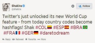 As if that weren’t enough, Twitter is also hosting the World Cup of Tweets. Fans can vote for their country on an interactive Twitter page which generates an automatic tweet with their team’s Twitter handle and hashtags. The country whose hashflag is mentioned the most will be deemed the winner and announced during the first game of the tournament.