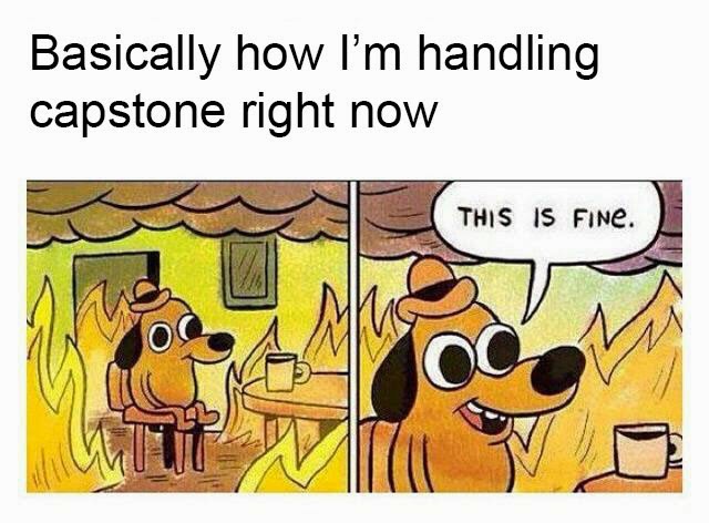 There will be times when it feels like it’ll never be over, like you’ll die before you get through capstone. It’s going to be one of the hardest things you’ve ever done, but in the end it will be worth it. Good luck!