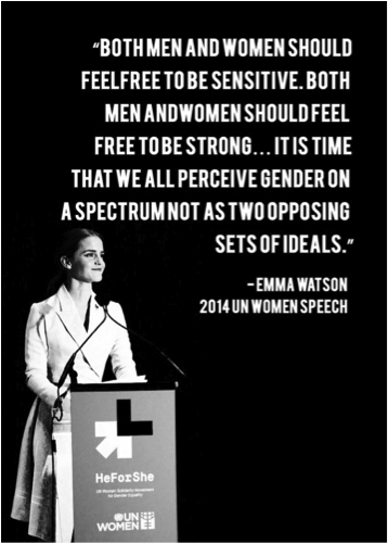 Social advocacy campaigns for gender equality need a longer lifespan. On September 22, 2014, Emma Watson proposed the “He for She” campaign to the UN advocating for men to embrace the definitional idea behind feminism. Her speech went viral receiving over 1 million views seemingly over night. Many of you probably retweeted, favorited, or shared some of her insightful words through social media around the time of its popularity, but have you recently? Have you seen any social movements for gender equality recently?