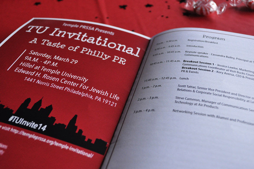 It’s that time of year again! Temple PRSSA is hosting their second annual TU Invitational next Saturday, March 21 in the Howard Gittis Student Center. The invitational welcomes chapter members and young professionals to learn, discuss and network with professionals in the communications industry at a one-day conference. This year’s theme is Broad Street: Your Road to Professional Development.