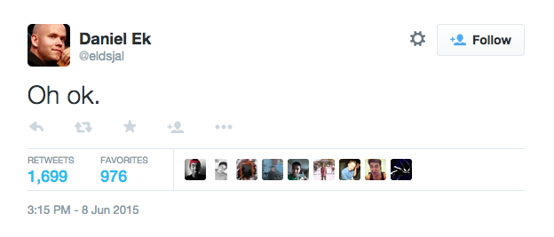 Spotify Chief Executive Officer, Daniel Ek, did not have much to say about the announcement initially, sharing only two words via Twitter: